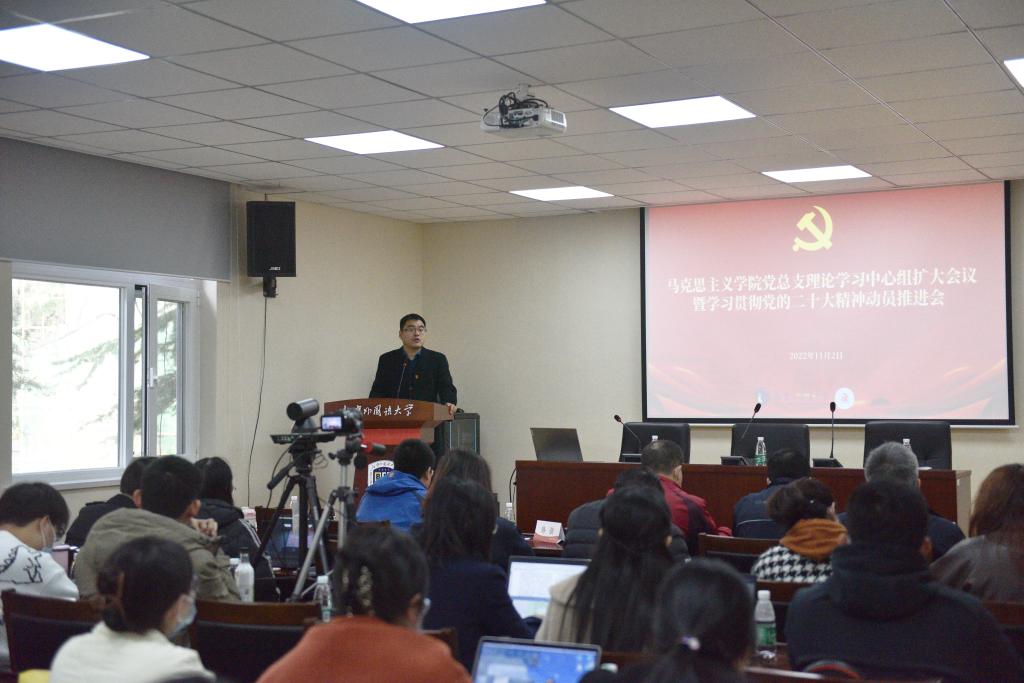为深入学习贯彻党的二十大精神,研究部署当前及下一阶段重点工作,11月2日上午,马克思主义学院党总支召开党总支理论学习中心组扩大会议暨学习贯彻党的二十大精神动员推进会,学院全体党员,党员发展对象、入党积极分子参加会议。会议明确,学院将坚决按照学校党委的统一部署,坚持“马院姓马,在马言马”的鲜明导向和首要原则,紧密结合学院工作实际,对党的二十大精神做到学用贯通、知行合一。一方面,要加强党组织理论学习,充分利用党总支理论学习中心组、专题党课等活动加强学习,创新学习形式,拓展学习路径,准确把握党的二十大精神实质和丰富内涵;另一方面,要结合党的二十大精神加强业务学习,将党的二十大精神全面融入思政课建设、学科建设和科学研究。