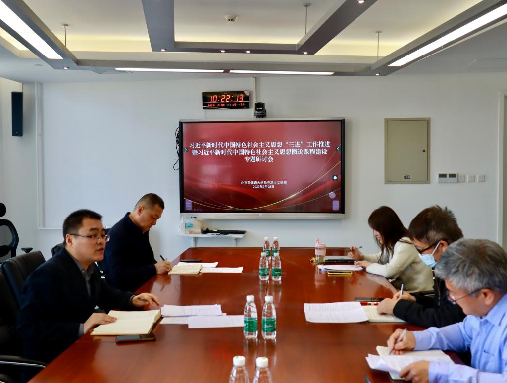 与会人员认为,今年是习近平总书记在学校思想政治理论课教师座谈会发表重要讲话4周年,也是学习贯彻党的二十大精神,推动习近平新时代中国特色社会主义思想“三进”工作的重要一年。思想政治理论课是落实立德树人根本任务的关键课程,是用党的创新理论武装青年学生的主阵地和主渠道。学院要聚焦用新时代中国特色社会主义思想铸魂育人这一根本任务,立足思政课程体系的整体建设,将“习近平新时代中国特色社会主义思想概论”课程建设作为重中之重的工作抓实抓好,提前谋划、科学设计,系统推进“三进”工作。