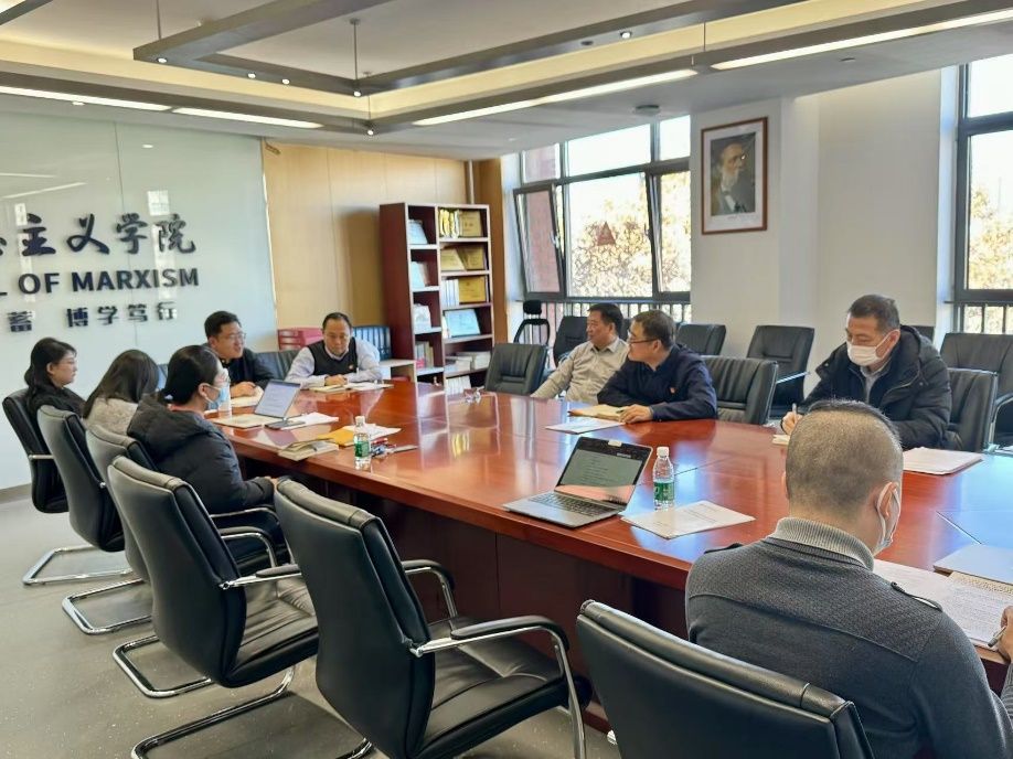 2025年1月10日上午,马克思主义学院召开预聘制教师聘期考核工作推进会,青年教师导师、马克思主义学院党总支书记祝和军、院长韩强、教授左高山出席会议,全体预聘制教师参加了会议。会议由党总支书记祝和军主持。