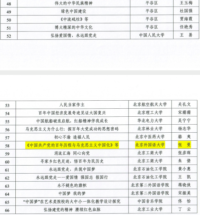 近日,中共北京市委教育工作委员会公布“永远跟党走”大中小学思政课优秀教学课例征集展示活动获奖名单,我院教师张曼荣获三等奖。