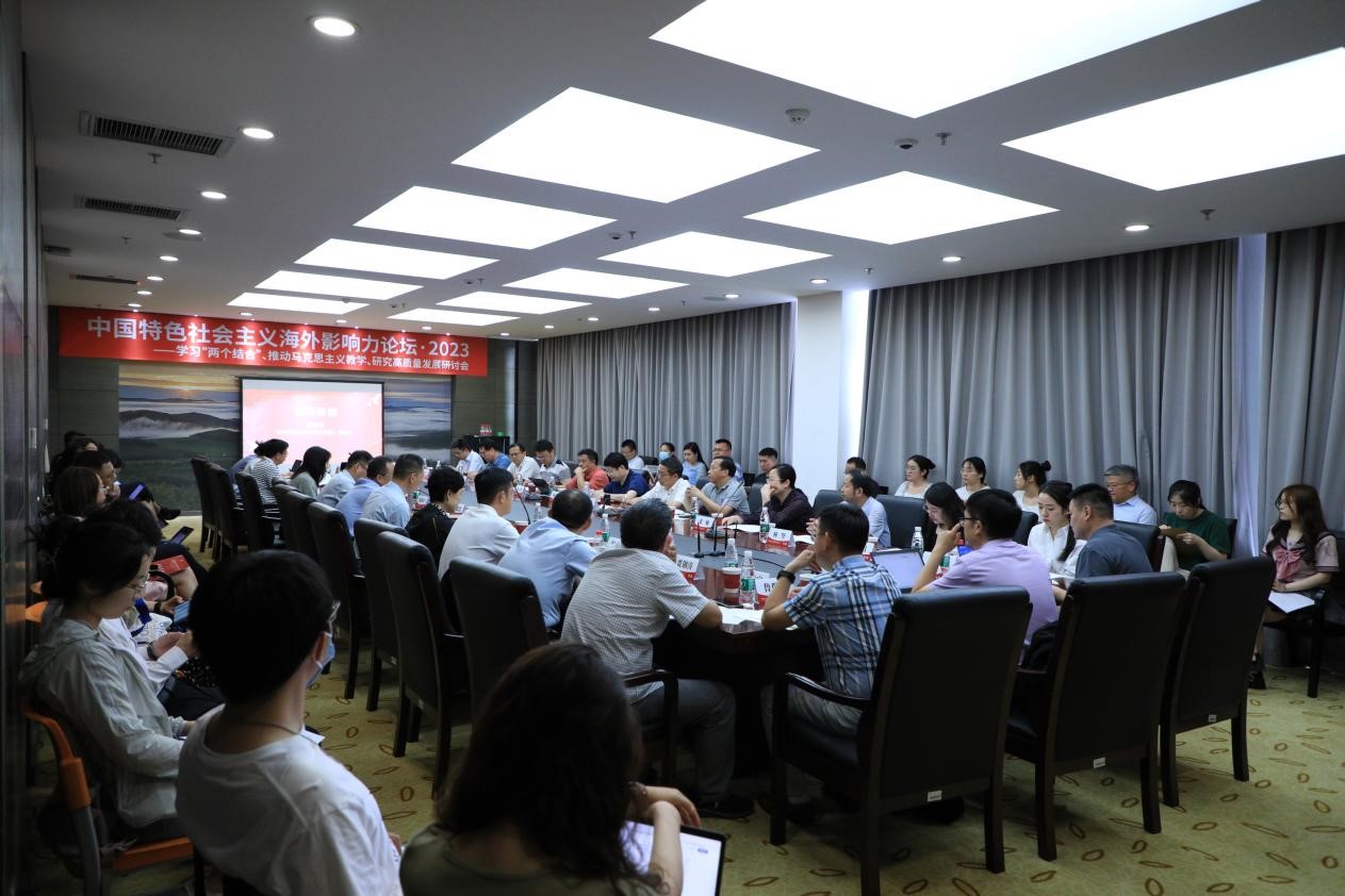 为深入学习习近平总书记关于主题教育的重要讲话精神,推动马克思主义学院教学、研究的高质量发展,6月11日,由北京高校中国特色社会主义理论研究协同创新中心(北京外国语大学)主办、北京外国语大学马克思主义学院承办的“中国特色社会主义海外影响力论坛·2023”在北京外国语大学举行。本次年度论坛的主题是“学习‘两个结合’,推动马克思主义教学、研究的高质量发展”。来自中国人民大学、中共中央党校(国家行政学院)、清华大学、北京大学、中国社会科学院等单位以及《马克思主义研究》、《中国人民大学学报》等重点期刊的60余位师生、编辑参加了会议。