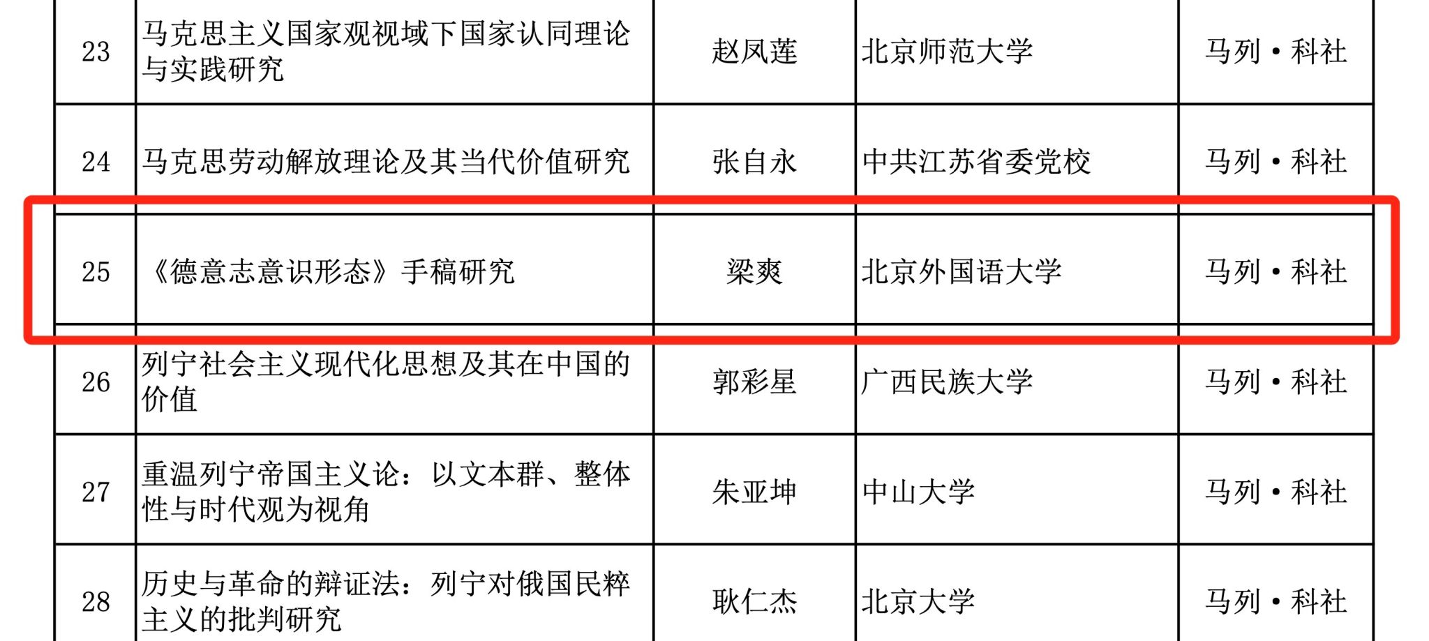 近日,在全国哲学社会科学工作办公室批准的国家社会科学基金后期资助项目中,我院教师梁爽主持的“《德意志意识形态》手稿研究”项目获得立项。