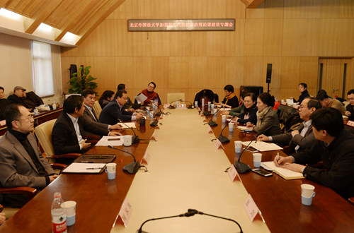 1月18日,学校举行加强新时代北京外国语大学思想政治理论课建设专题会。校长彭龙出席会议并作工作部署,副校长闫国华、贾德忠、贾文键出席会议,会议由贾文键主持。