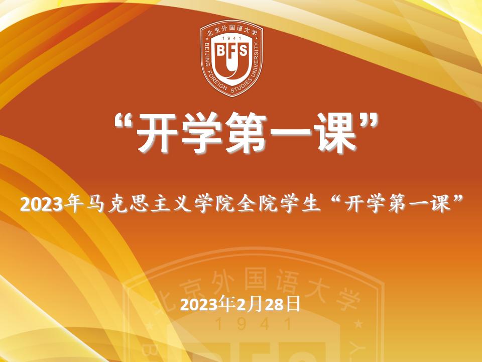 马克思主义学院2023年春季学期“开学第一课”,是学院深入学习宣传党的二十大精神,贯彻落实教育部工作部署,坚定立德树人根本任务的重要举措。学院上下高度重视,精心策划,周密安排,旨在帮助同学们以更加热情饱满的精神面貌和勇毅前行的奋进姿态,迎接新学期、锚定新目标、奔赴新征程。
