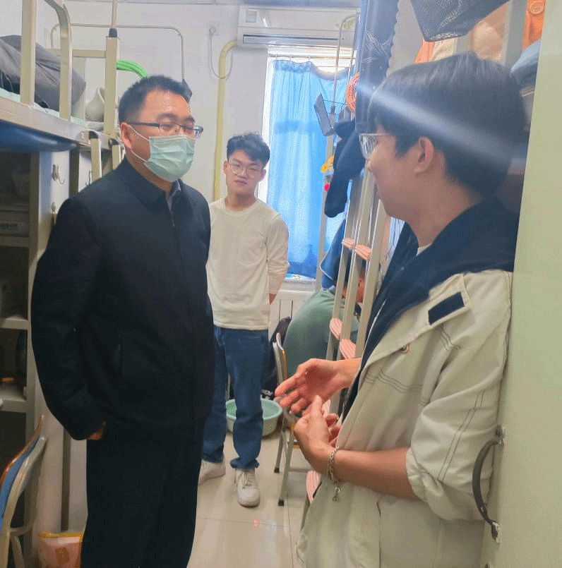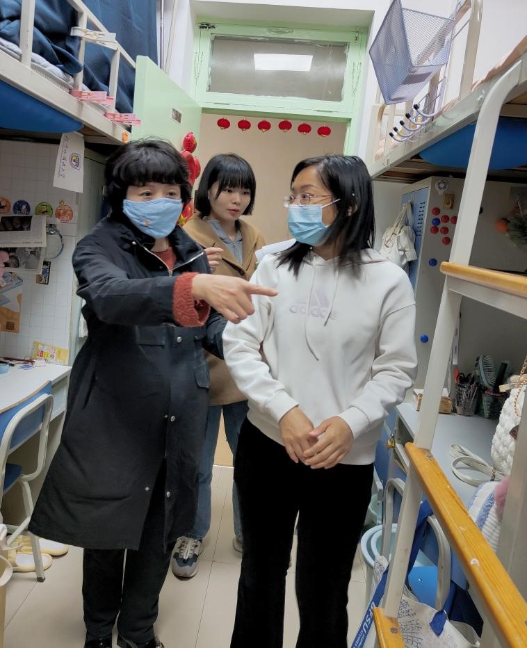 近日,为加强宿舍安全管理,排查宿舍安全隐患,营造良好的学习生活环境,马克思主义学院党总支书记祝和军老师、学生辅导员刘珊珊老师、办公室孟蔓老师带队深入学生宿舍走访慰问,了解学生宿舍基础设施、环境卫生、消防安全情况,并与同学们亲切交流。