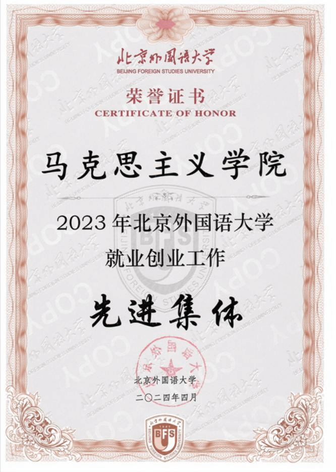 2024年4月25日,学校召开2024年就业创业工作推进会,通报2023届毕业生就业情况及2024届毕业生就业创业工作进展,并表彰就业创业工作优秀集体和个人。在会上,马克思主义学院获评2023年度“就业创业工作先进集体”。
