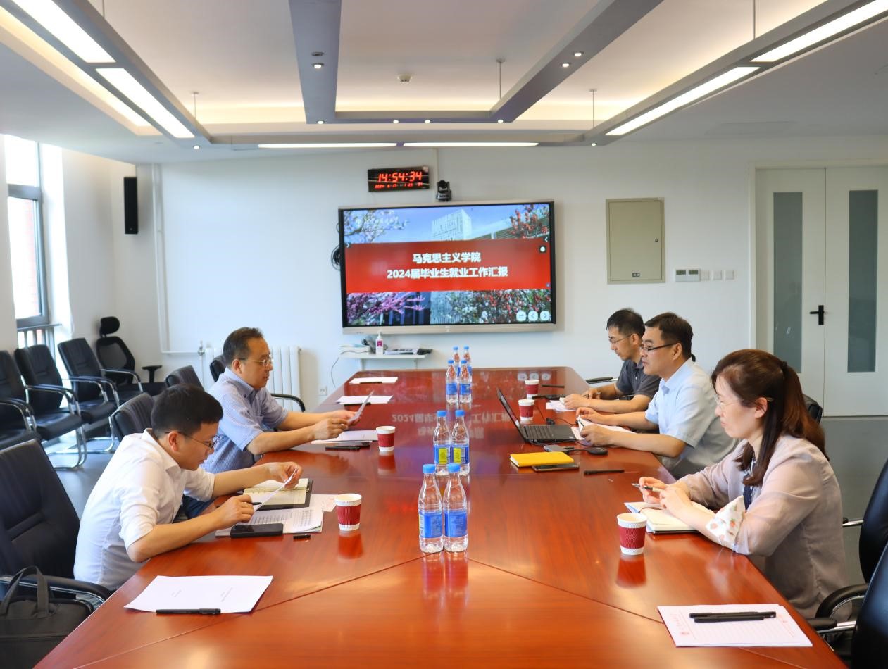 2024年6月17日下午,校党委常委、副校长贾德忠带队走访调研马克思主义学院2024届毕业生就业工作,就业创业中心主任兰建华一同参加。马克思主义学院党总支书记祝和军、党总支组织员王浩、办公室主任周雪颖参加汇报。