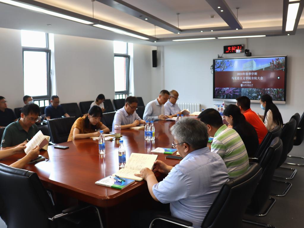 2024年7月5日上午,马克思主义学院召开2024年春季学期期末大会,全体教职工参会,会议由党总支书记祝和军主持。