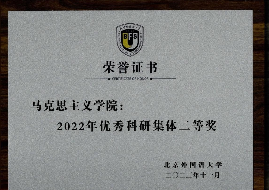 2023年12月29日,北京外国语大学2023年度科研工作会举行。会上,对荣获2021、2022年优秀科研集体、个人荣誉称号和2022年优秀科研成果奖的单位和教师代表进行了表彰。我院获得2022年度北京外国语大学优秀科研集体二等奖。王曼倩老师获得2022年科研优秀个人奖。