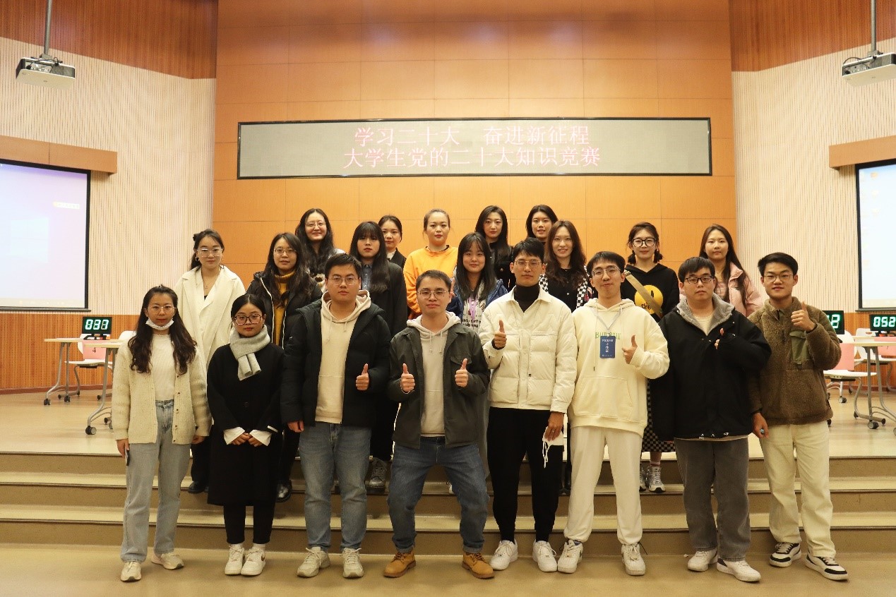 旗帜引领方向,思想凝聚力量。为深入学习宣传贯彻党的二十大精神,引导我校学子学思践悟党的二十大精神,北京外国语大学于20221123日在东校区阿语楼国会厅顺利举办“学习二十大,奋进新征程”党的二十大知识竞赛(初赛)。本次比赛共派出19支学院代表队参加本次比赛。我院参赛队伍由谢永达、杨铠、伍帅3名参赛选手以及17名亲友团成员共同组成。