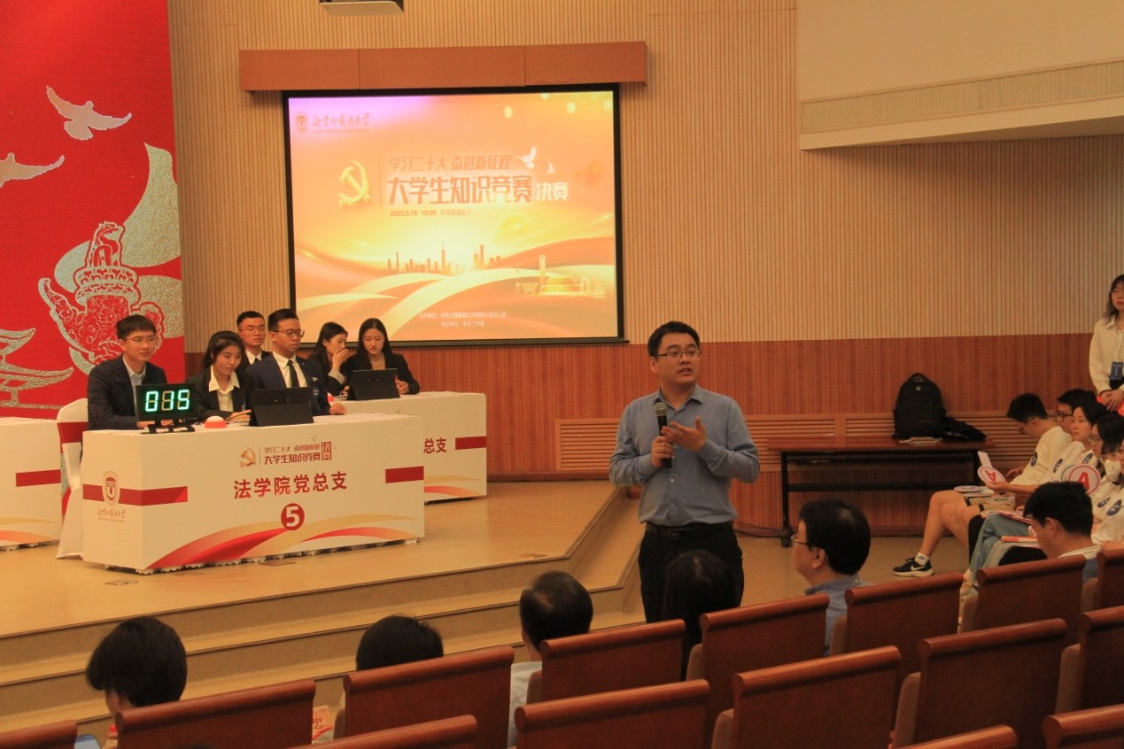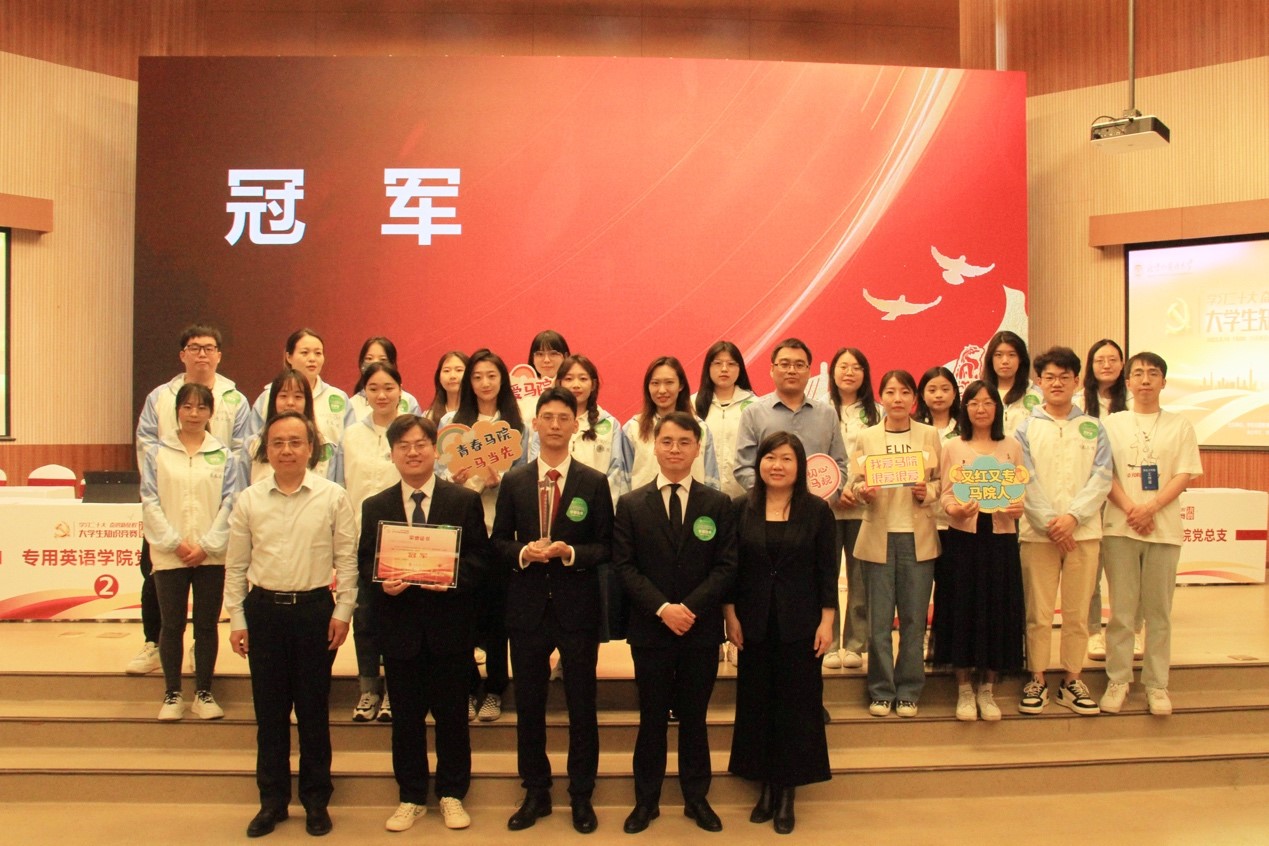 北京外国语大学“学习二十大,奋进新征程”大学生党的二十大知识竞赛决赛于5月10日举办。我院学生谢永达、杨铠、伍帅组建竞赛团队,在学院全体师生的支持下,克服困难、积极备战,最终马克思主义学院党总支代表队在决赛中以绝对优势斩获冠军。