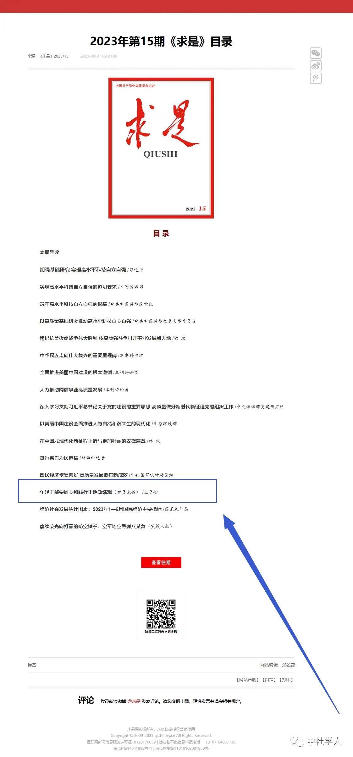 8月1日,2023年第15期《求是》杂志刊登了北京外国语大学马克思主义学院王曼倩副教授的文章《年轻干部要树立和践行正确政绩观》。