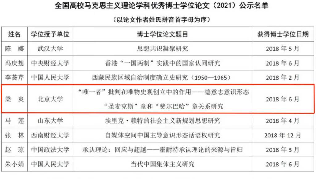 2023年11月4日,由全国高校马克思主义理论学科研究会主办的全国高校马克思主义理论学科博导论坛暨全国高校马克思主义理论学科优秀博士学位论文颁奖典礼在安徽师范大学举行,会议对2021—2023年度全国高校马克思主义理论学科优秀博士学位论文奖获得者进行了表彰。我院教师梁爽获此奖项。