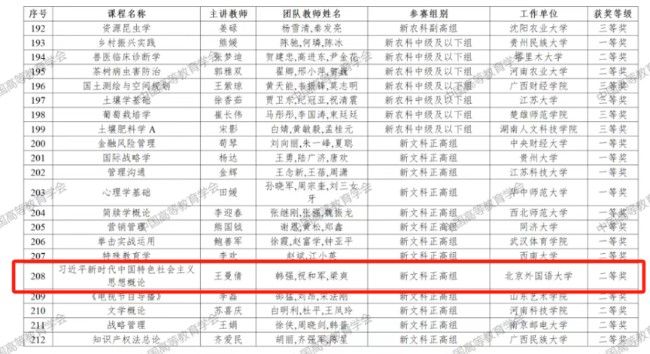 8月16日至19日,第五届全国高校教师教学创新大赛总结交流大会在北京理工大学举行。北京外国语大学马克思主义学院教授王曼倩团队(团队成员:韩强、祝和军、梁爽)所讲授课程《习近平新时代中国特色社会主义思想概论》获新文科正高组全国二等奖。