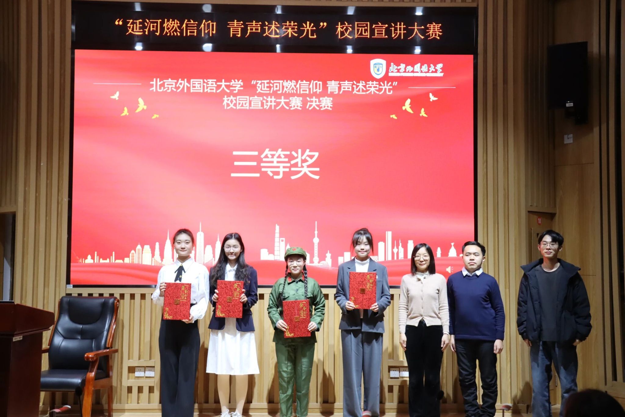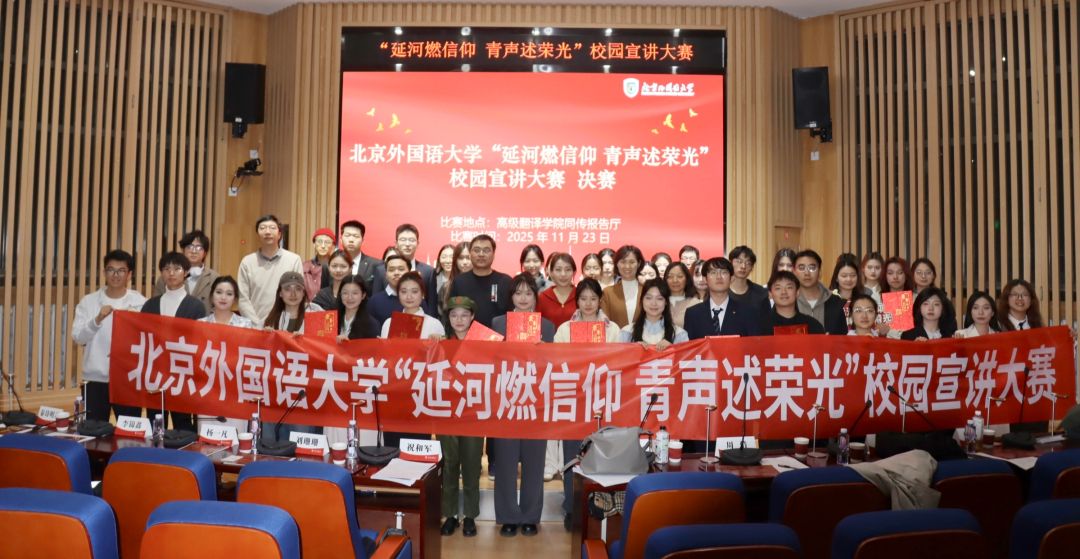 2025年11月23日下午,北京外国语大学“延河燃信仰 青声述荣光”校园宣讲大赛决赛隆重举行。本次大赛由校团委、马克思主义学院、档案馆、校史馆、世界语言博物馆主办。来自学校马克思主义学院、国际关系学院等11个学院的26组选手,共计50余名同学参赛。